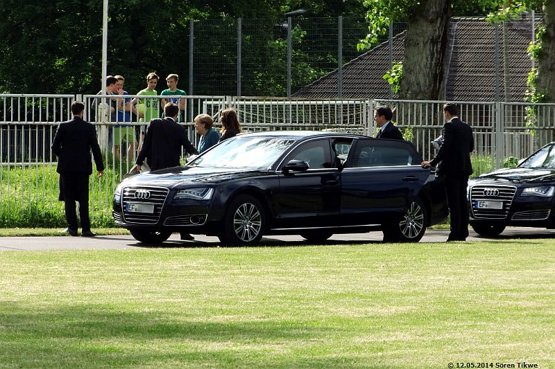 Dann stieg sie aus, unsere Bundeskanzlerin. Ein kurzes Winken und ab in die Fahrzeuge zum Redetermin.
