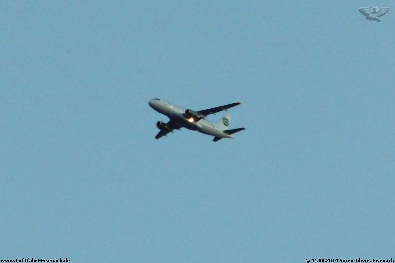 Aber immerhin überflog der Airbus A319-112 der Germania auf dem Weg nach Erfurt die Wartburgstadt am 11.08.2014 gegen 21:00 Uhr.