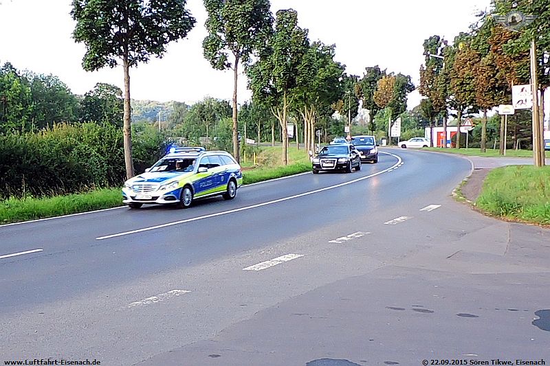Aber zumindest war Habicht 3, einer der Hubschrauber der Polizeihubschrauberstaffel Thüringen immer als Geleitschutz von der Wartburg bis zur Autobahn A4 dabei, wenn einer der Staatsmänner die Wartburg verliess.