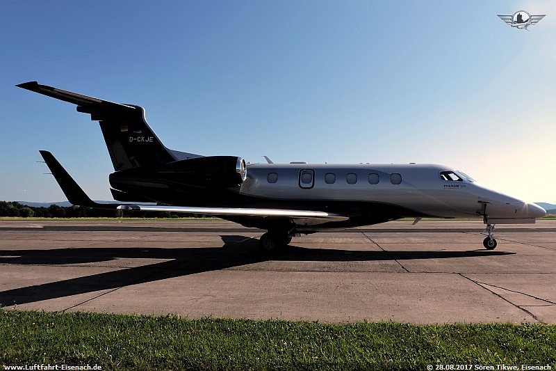 Die D-CKJE wurde übrigens erst im April 2017 ausgeliefert. Die Embraer EMB-505-Phenom-300 gehört zur Fluggesellschaft LuxAiation-Germany, einer Tochtergesellschaft der LuxAviation aus Luxemburg. Bis 2011 fimierte man unter der Marke Fairjets. Die Basis der Firma ist in Paderborn.