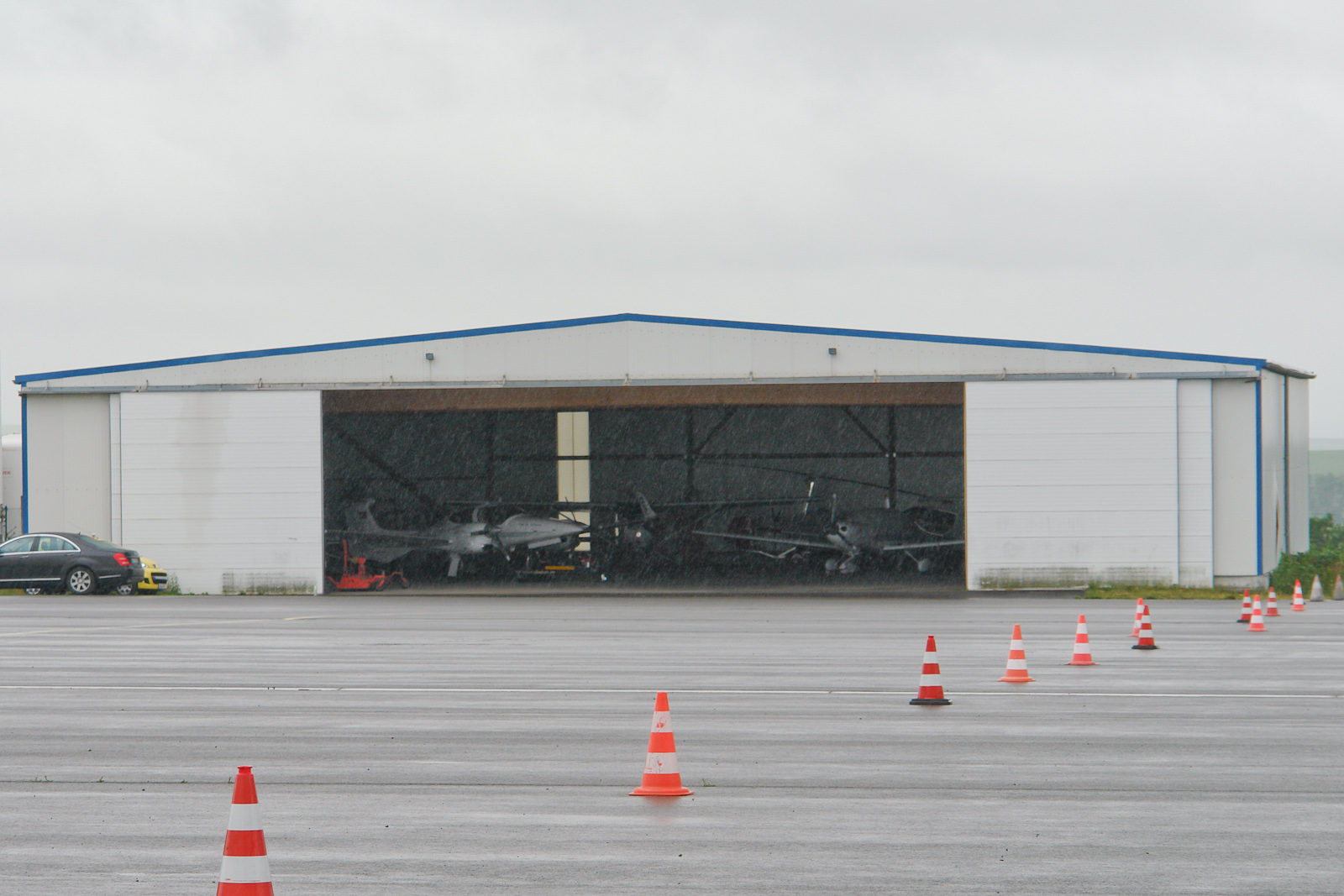 Leider war das Wetter nicht optimal, den Hangar habe ich etwas im Licht angehoben , um mal das darin abgestellte Fluggerät zu zeigen.