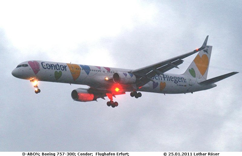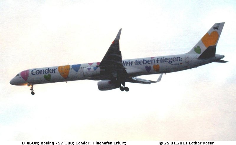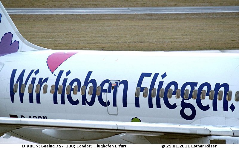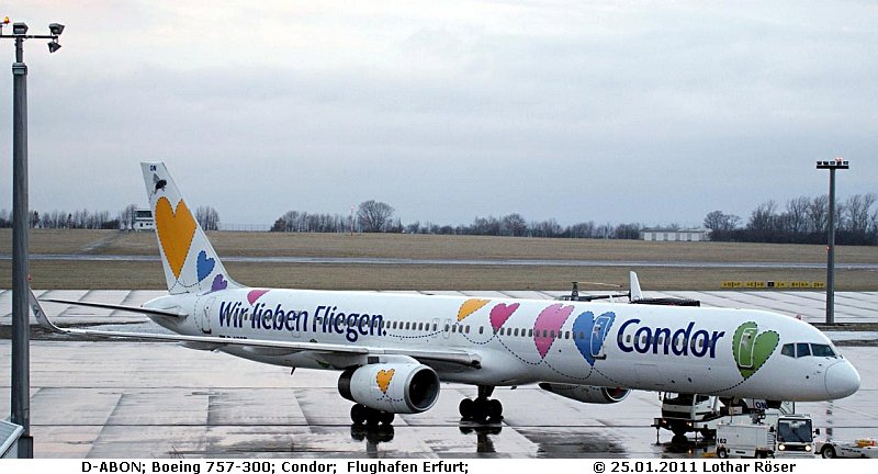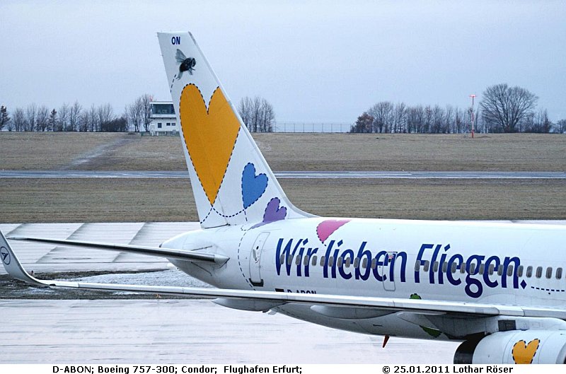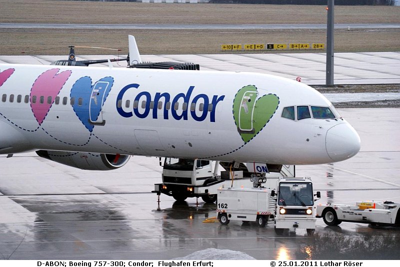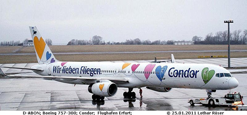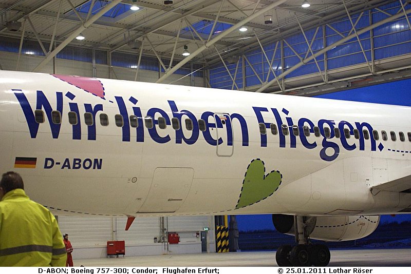 Ihre Boeing 757-300 mit dem Kennzeichen D-ABON schickte die Flugesellschaft Condor nach Erfurt zur fälligen Wartung.
