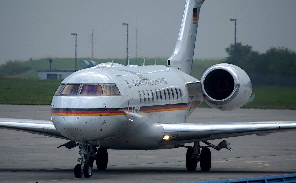 Trotz ausreichendem Wetter erolgte die Landung des Herrn Gauck in Erfurt, offenbar mit einer Global 5000 in Erfurt.