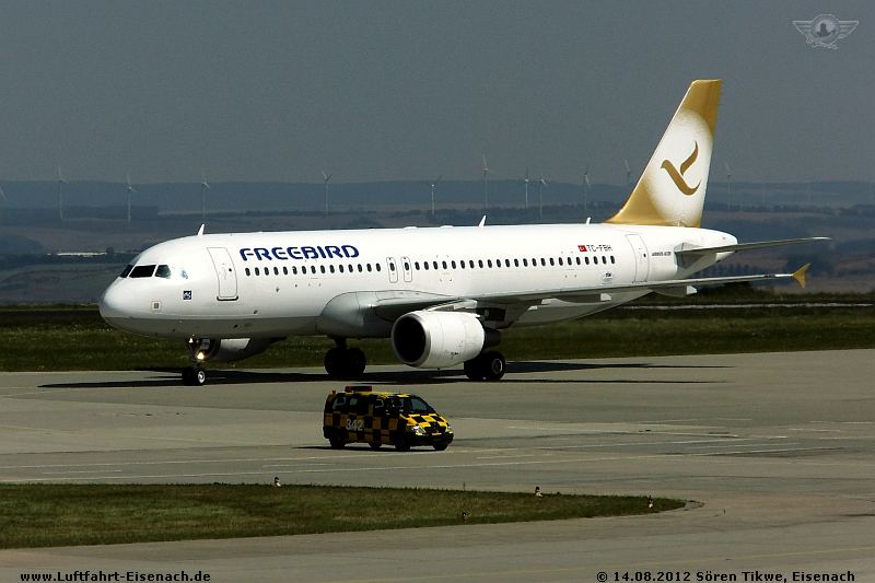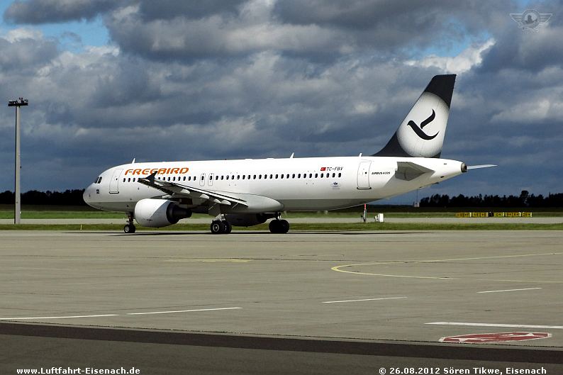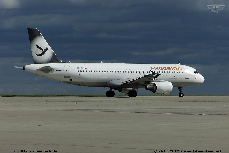 Heute, am 26.08.2012, war die TC-FBV der Fluggesellschaft Freebird aus der Türkey in Erfurt. Der Airbus A320-214 war bereits einige Zeit vor Plan am Thüringer Hauptstadtflughafen.