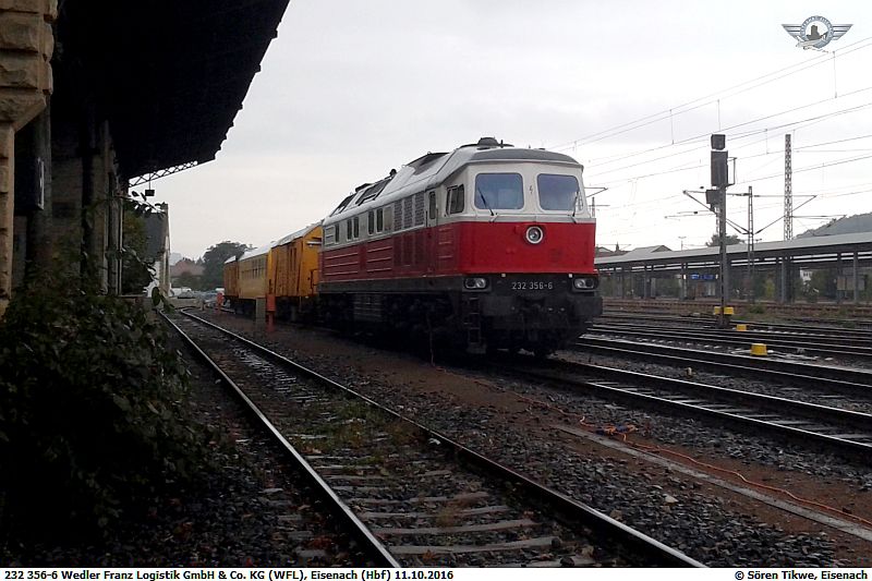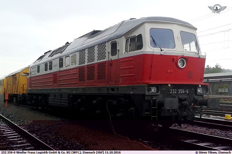 Am 11.10.2016 stand 232 356-6 von Wedler Franz Logistik GmbH & Co. KG (WFL) auf einem Nebengleis auf dem Hauptbahnhof Eisenach.