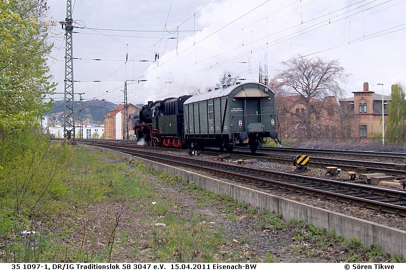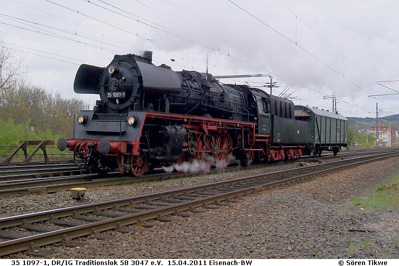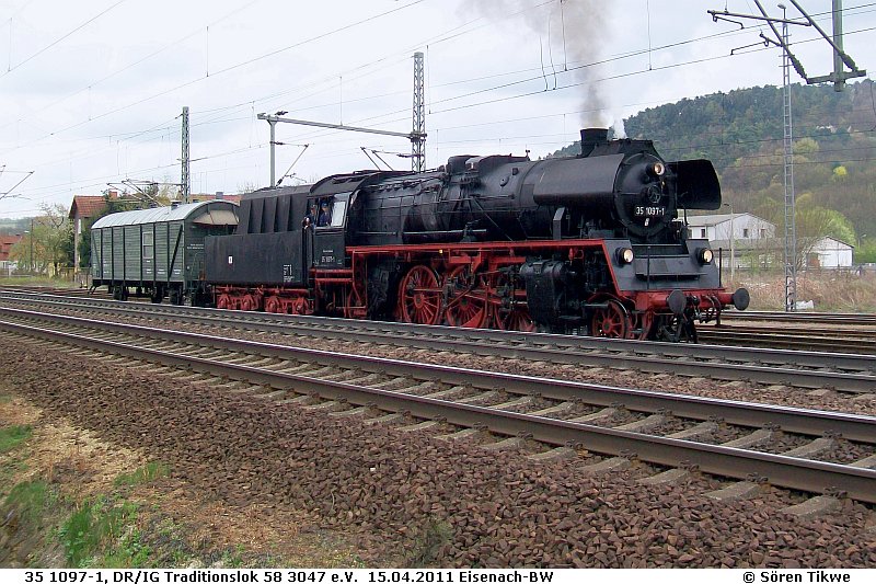 Am Montag, dem 18.04.2011 kam die 35 1097-1 aus Bochum zurück. Wiederrum war ja in Eisenach Wasserfassen angesagt.