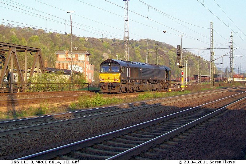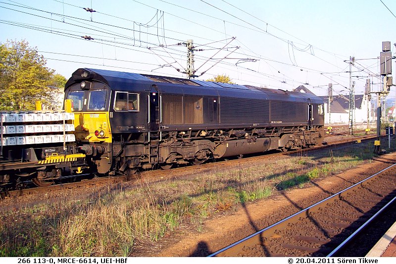 Manche finden sie gewaltig, die Class-66 der MRCE. Ludmilla-Fans erschüttert das natürlich nicht. Trotzdem ist das Gefährt recht imposant. 266 113-6 war in Eisenach, um einen Güterzug voll Gleise abzuholen.