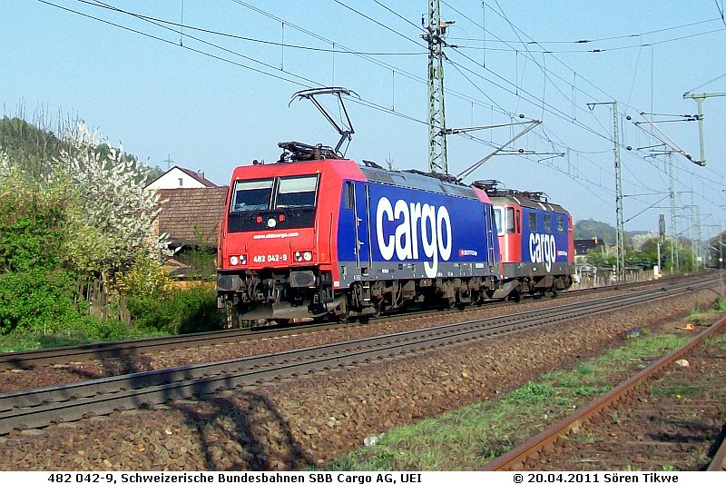 Nach etwa einer Stunde Streckensperrung hatte sich einiges aufgestaut. So konnte man auch zwei Lokomotiven der Schweizerischen Bundesbahnen SBB Cargo AG erwischen.