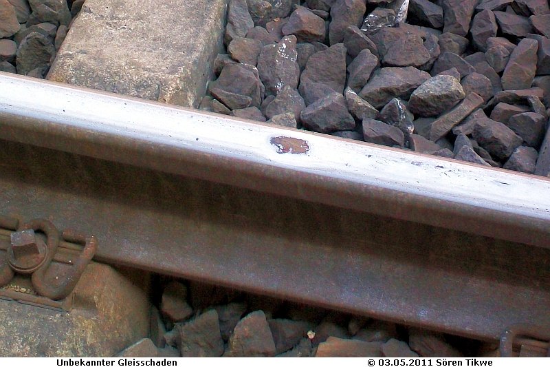 Was mir aufgefallen sind, sind kleine Beschädigungen der Gleise. Meist im Bereich des Bahnsteiges, wo jeweils die Lokomotive hält. Die Beschädigungen sind auch immer beidseitig vorhanden. Hat jemand eine Erklärung dafür?