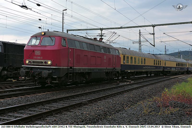 Ab Malsfeld-Beiseförth bis Eisenach läuft 215 086-7 als 1.Wagen. Die Rückfahrt von Eisenach nach Köln führt 215 086-0 durch.