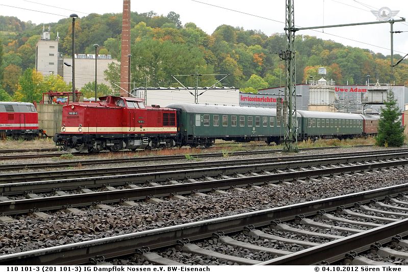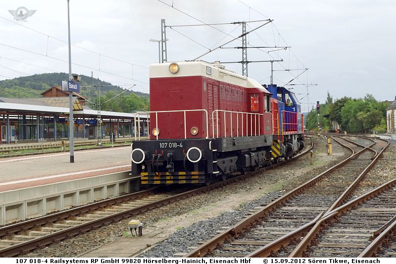 Am 15.09.2012 war die 107 018-4 erneut in Eisenach angesagt. Bekannt war, das 3 Pendelfahrten zwischen Eisenach und Dorndorf stattfinden würden, um einige Güterwagen nach Eisenach zu bringen.