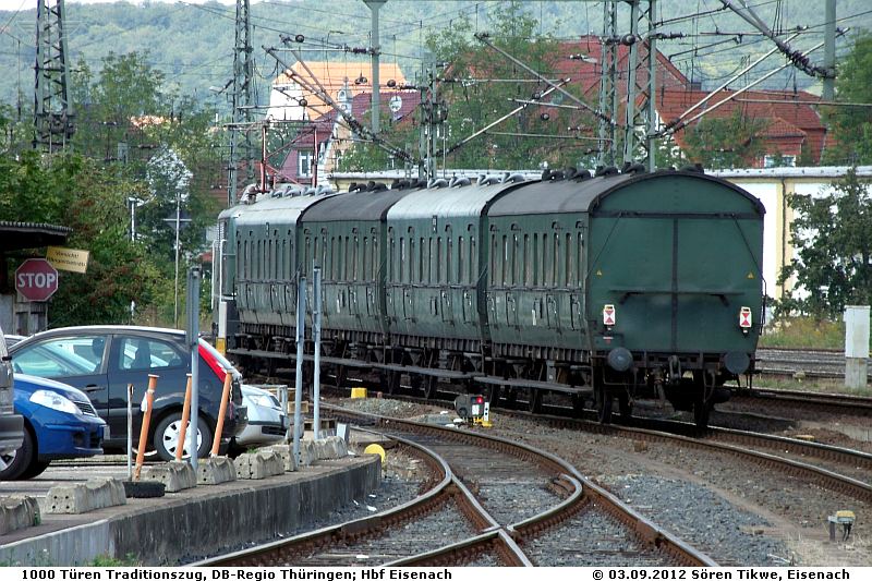 Am Montag, dem 03.09.2012 wurde der 1000-Türen-Zug deshalb von Meiningen, wo er zzuletzt abgestellt war, via Eisenach nach Koblenz überführt.