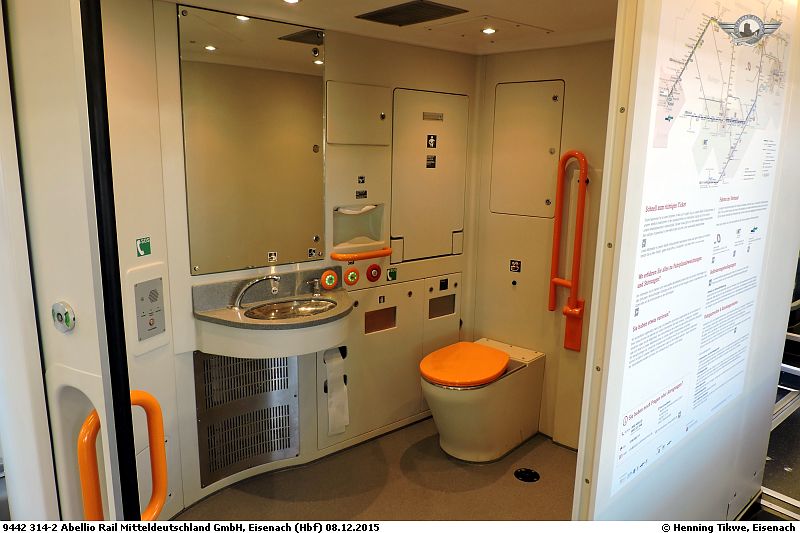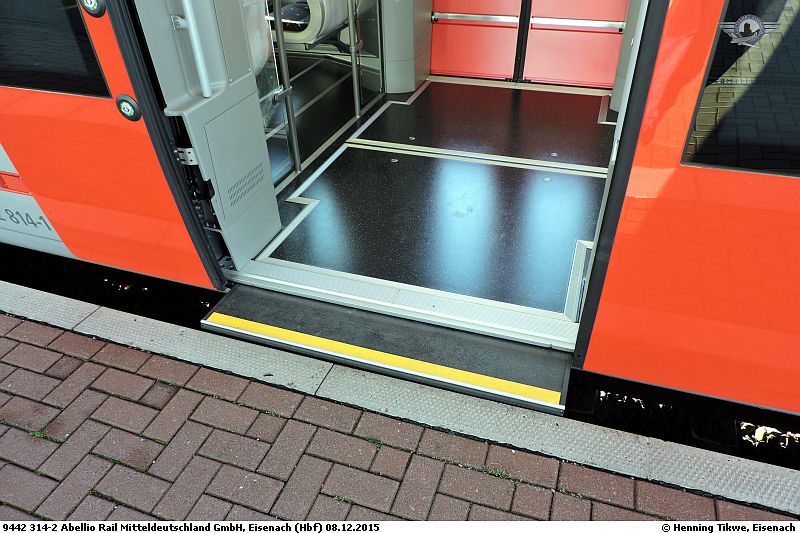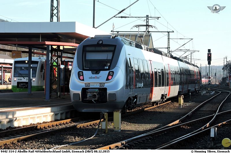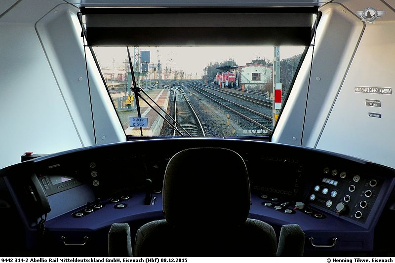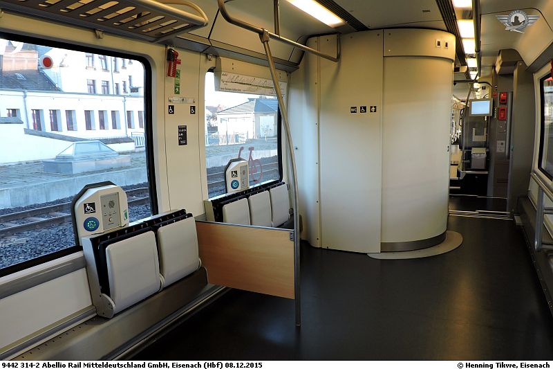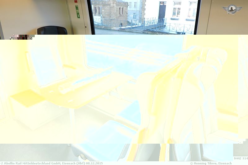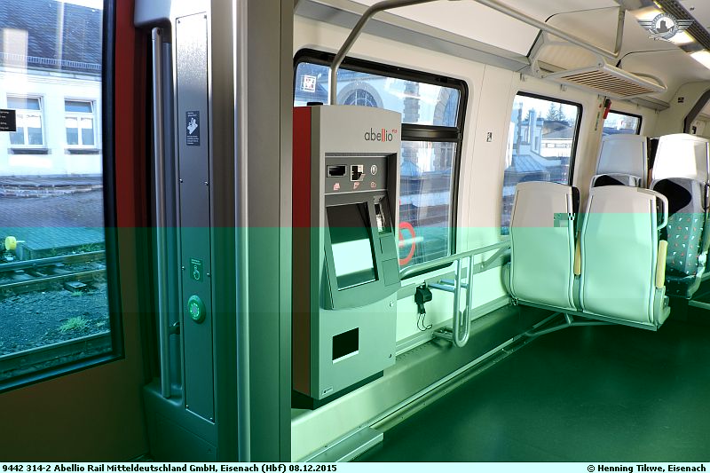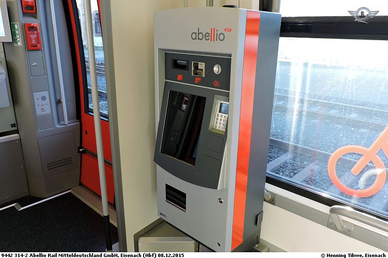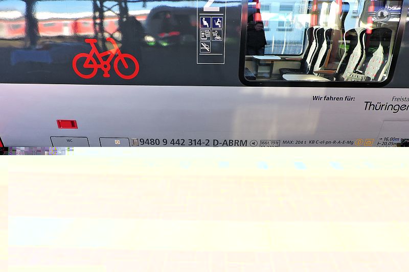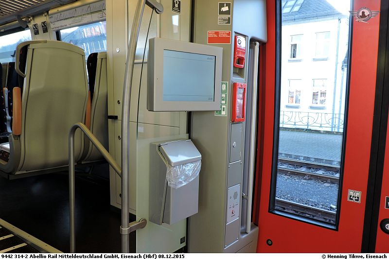 Bekanntlich übernimmt ab 13.12.2015 die Firma Abellio für die nächsten 15 Jahre den Regionalverkehr auf der Regionalbahn 20 zwischen Halle und Eisenach. Abellio ist eine Tochterfirma der Niederländischen Staatsbahn. Wie üblich auf solchen Veranstaltungen wurde natürlich nur auf das Gute hingewiesen. Das wären da auf jeden Fall der barrierefreie Einstieg, denn die Einstiegshöhe ist genau in Bahnsteighöhe. Auch die Klimaanlage ist erwähnenswert sowie der Platz für die Mitnahme von bis zu 26 Fahrrädern. Die Möglichkeit, Fahrkarten im Zug zu erwerben bestand auch schon zuvor, aber ist jetzt durch im Zug angebrachte Automaten komfortabler. Jedenfalls hat sich Frau Wolf, ihres Zeichens Oberbürgermeisterin der (noch-) kreisfreien Stadt Eisenach, nicht nehemen lassen, die Zug, ein Fahrzeug des Typs Bombadier Talent 2 mit dem Kennzeichen 9442-314, persönlich auf den Namen "Die Wartburg" zu taufen. Dazu enthüllte sie den Namenszug und besprühte diesen mit Sekt, eine Flasche dagegen zu werfen hat man sich dann doch verkniffen.
