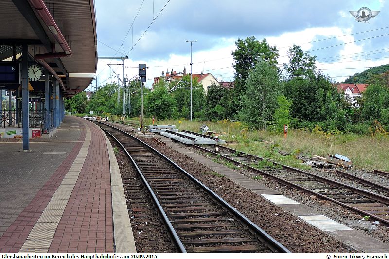 Im September war wieder Gleisbau in Eisenach angesagt. Im Ostteil des Hauptbahnhofs wurden einige Weichen geewchselt. Vermutlich beteht bei den Arbeiten ein Zusammenhang mit der Ertüchtigung der KBS-605 für eine Geschwindigkeit von 200 km/h.