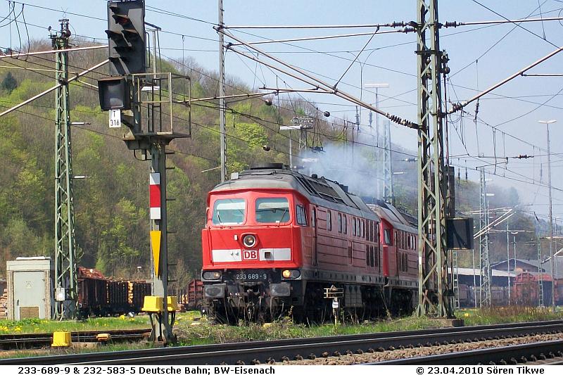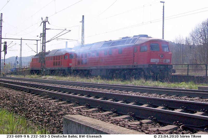 Am 29.04.2010 wurde 232-583-5 aus Eisenach durch 232-689-9 abgeholt. Die Lok wurde ins Ausbesserungswerk