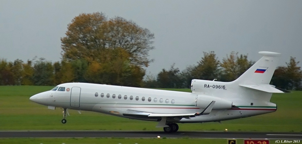 Die Dassault Falcon 7x der Fluggesellschaft Ak Bars Aero trug interessanterweise das russische Kennzeichen RA-09616.
