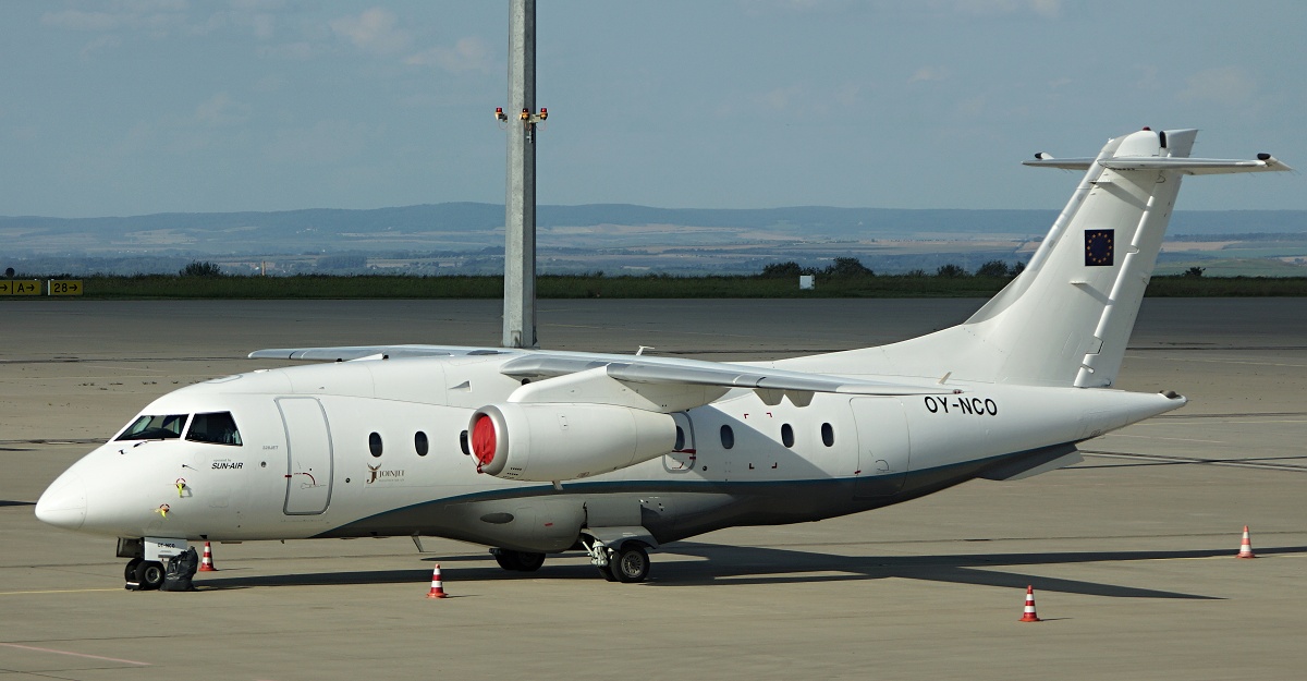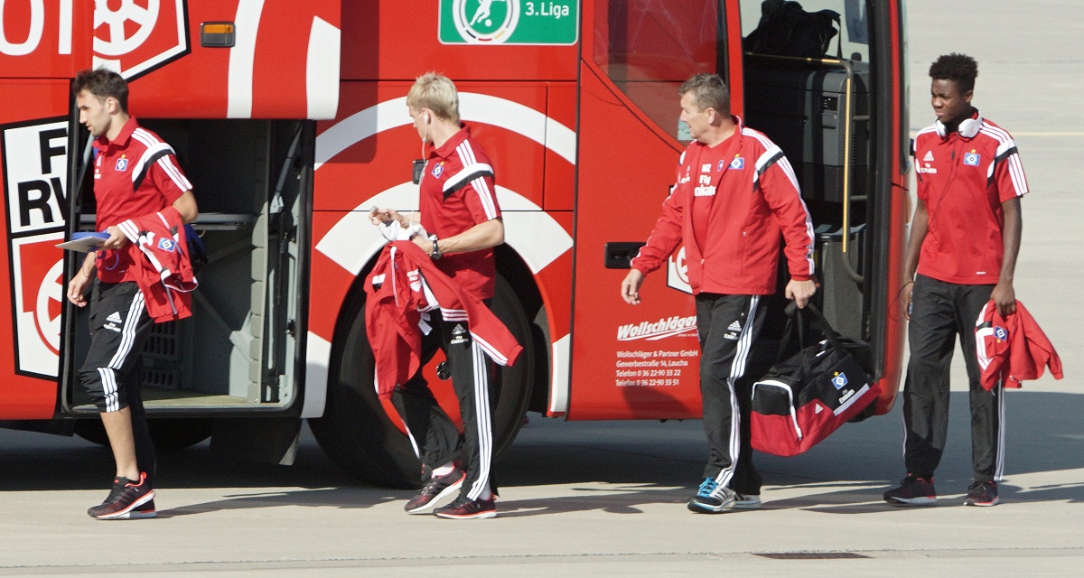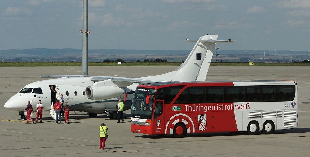 Heute ist wieder mal ein Bundesligist, der HSV zu einem Testspiel gegen RWE in Erfurt mit einer Do328-310 328JET, OY-NCO, Sun Air Scandinavia gelandet.