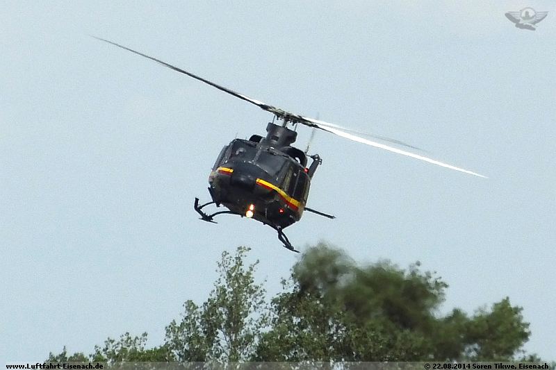 Schön zu erkennen: im Gegensatz zum allseits bekannten UH-1D bzw. Bell-205-A1 verfügt der Hubschrauber ueber zwei Triebwerke und einen 4-Blatt-Rotor.