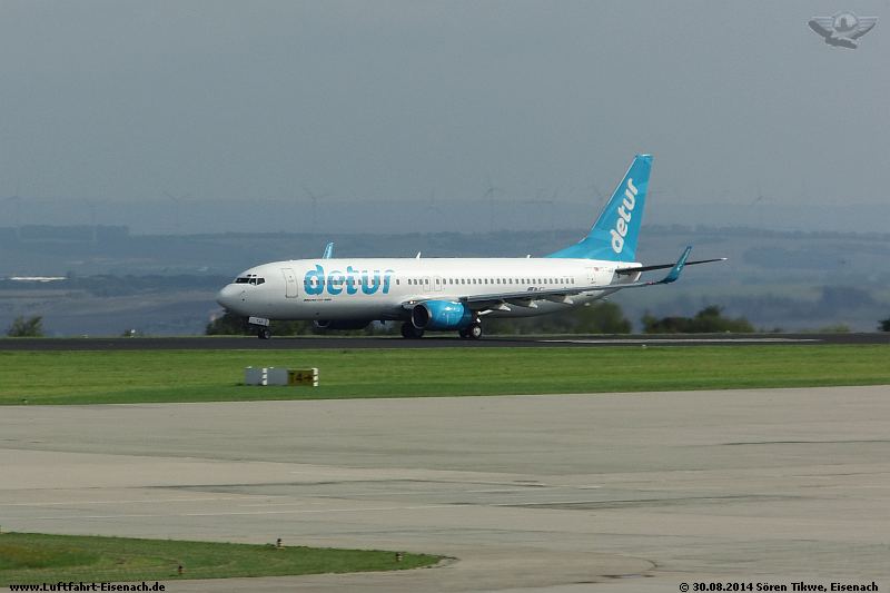 Um 9.30 Uhr landete die TC-TJJ, allerdings nicht in den Farben des Betreibers, sondern das Flugzeug war in den Farben des Reiseveranstalters "Detur" lackiert.