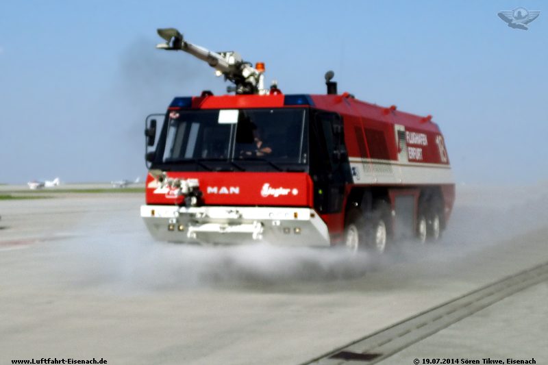 Ich habe mich immer gefragt, warum oft die Feuerwehr auf dem Vorfeld in Erfurt-Bindersleben steht, obwohl momentan gar nichts landet.