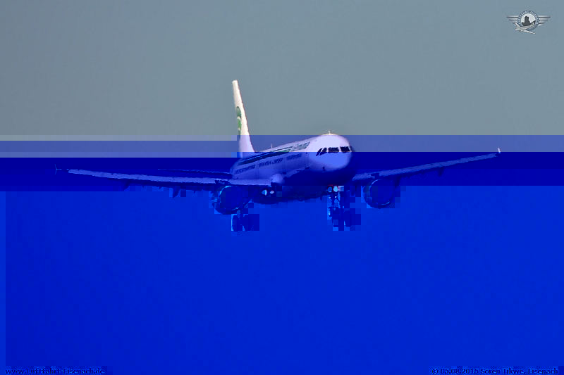Am 13.08.2015 landet D-ASTB, eine A319-112 der Germania, aus London-Gatwick kommend auf dem Flughafen Erfurt-Weimar.