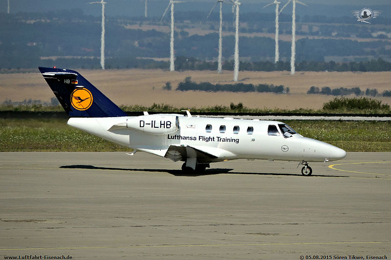 Auf einen Tankstop kam Lufthansa Flight Training mit ihrer Cessna C-525A CitationJet 1+ mit dem kennzeichen D-ILHB. Aus der Türkei landete Die Firma Freebird in Erfurt.
