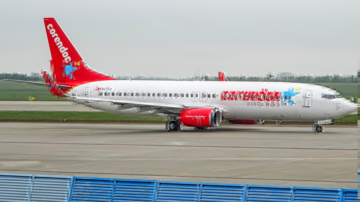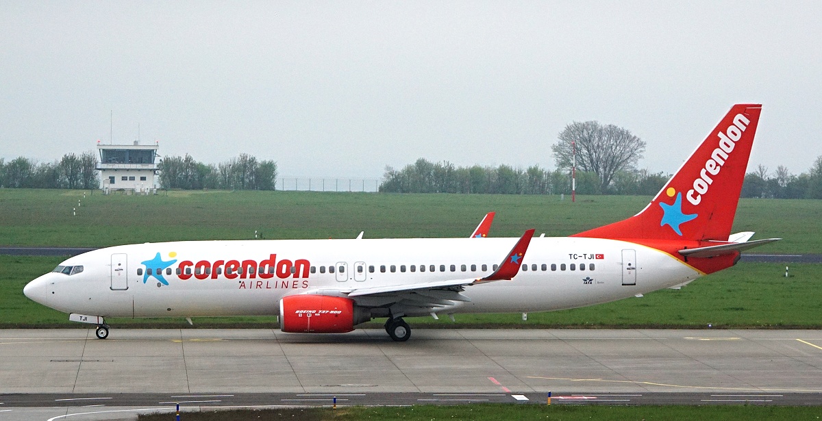 Bei den zeitlich dicht aufeinanderfolgenden Starts der beiden Maschinen hatte ich auf der Terrassenposition das Glück, dass zuerst die Corendon gepusht wurde. Somit konnte ich beide Maschinen vollständig im Stand erwischen, zumal nicht mal eine Treppe im Weg war (!). Auch der bereits einsetzende Nieselregen störte auf dieser Position nicht wesentlich.