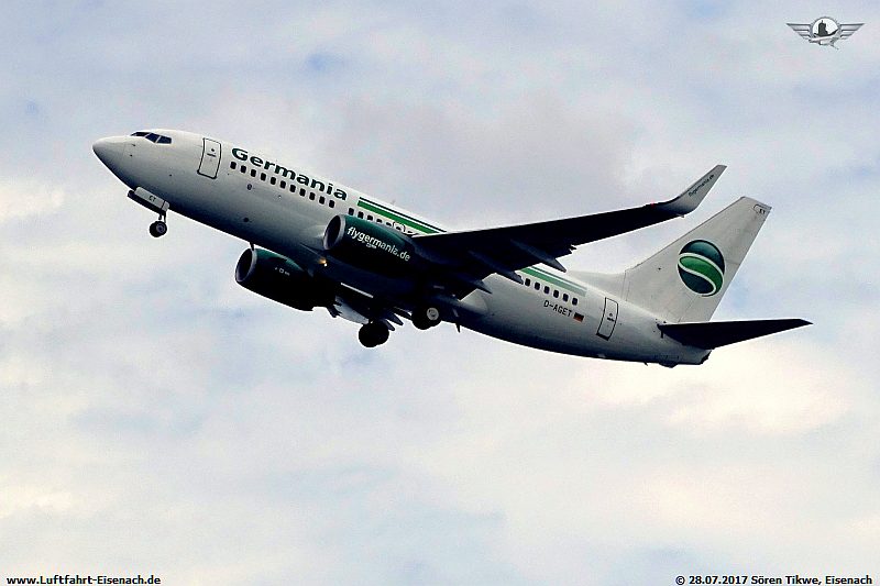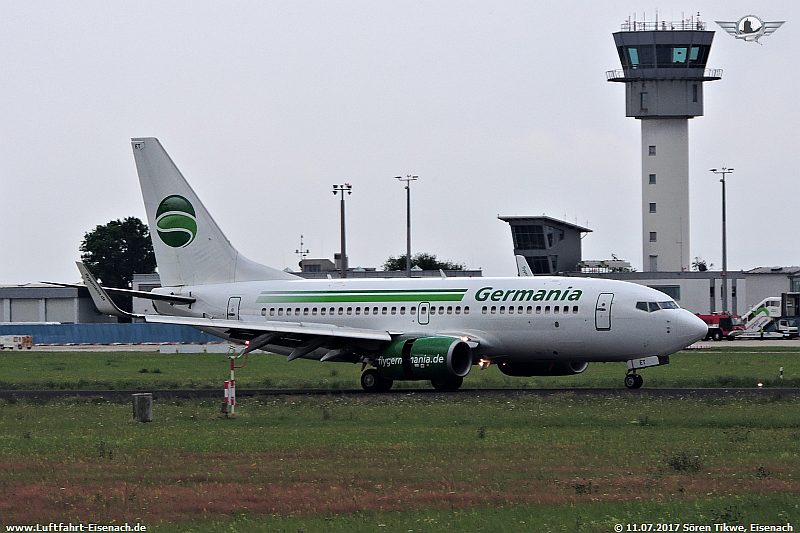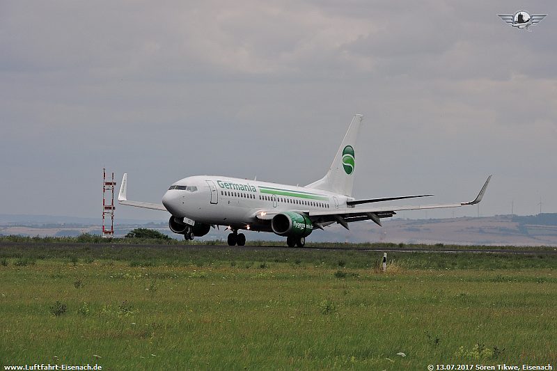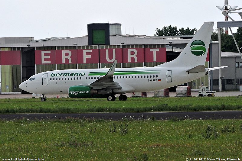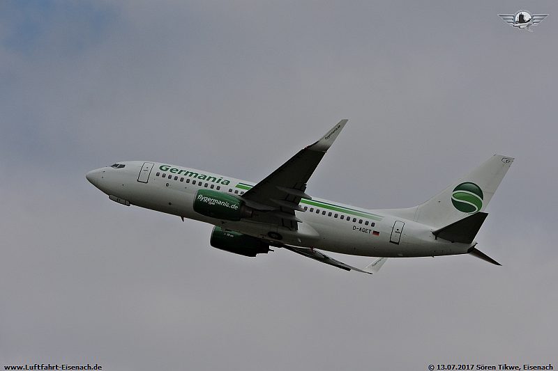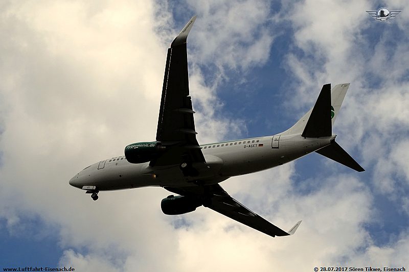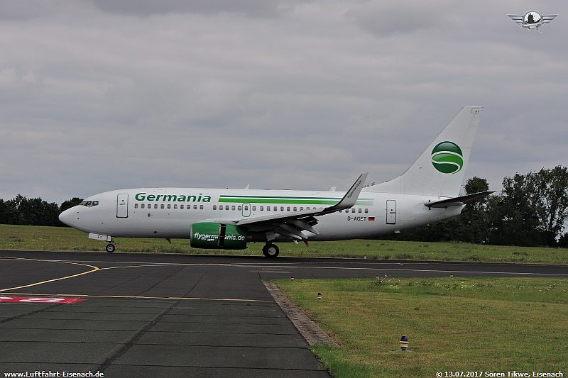 Als zweite Maschine war eine aus Griechenland anfliegende B737-700 der Firma Germania, die D-AGET, eine Boeing 737-75B.