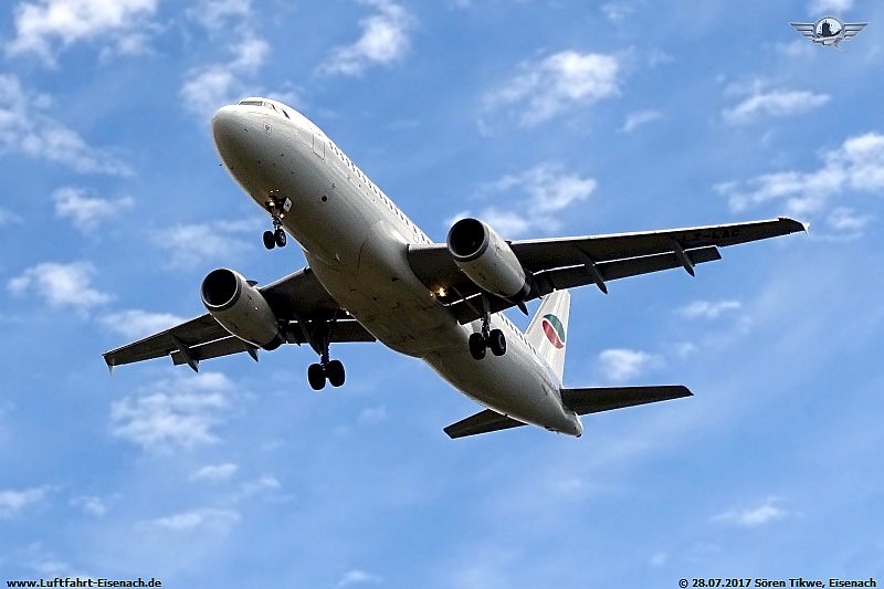 Die erste Maschine war die LZ-LAC A320-200 Bulgarian-Air-Charter. Eigentlich war ich ja auf eine MD-82 gefasst. "Leider" kam ein Airbus A320-200.