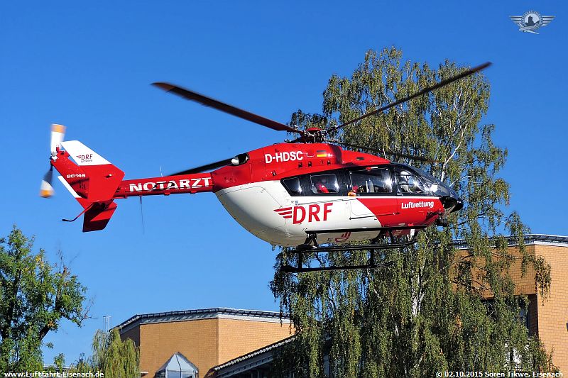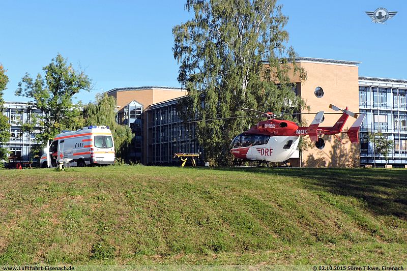 Nicht auf dem Flugplatz Eisenach-Kindel, sondern am Hubschrauberlandeplatz am Sankt Georg-Klinikum Eisenach landete D-HDSC, ein Airbus Helicopters/Eurocopter BK-117-C2 (EC-145) der DRF Flugdienst, gegen 09:30 Uhr.