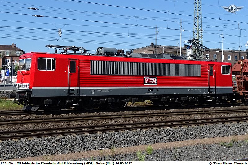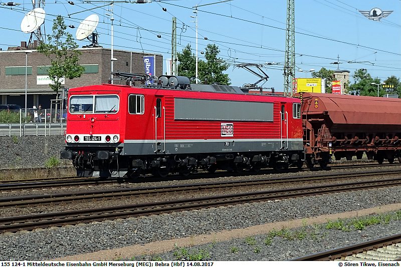155 124-1 im Bahnhof von Bebra in Osthessen am 14.08.2017.